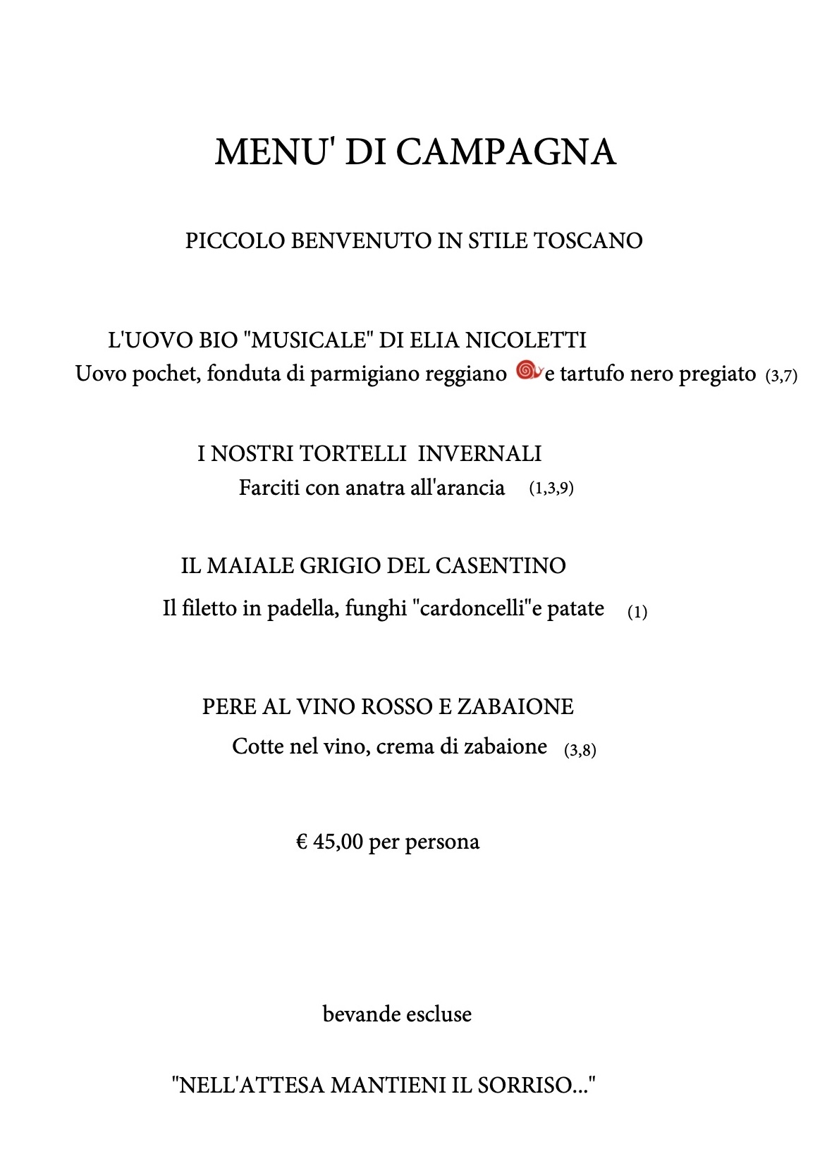 MENU' CENA DEGUSTAZIONE